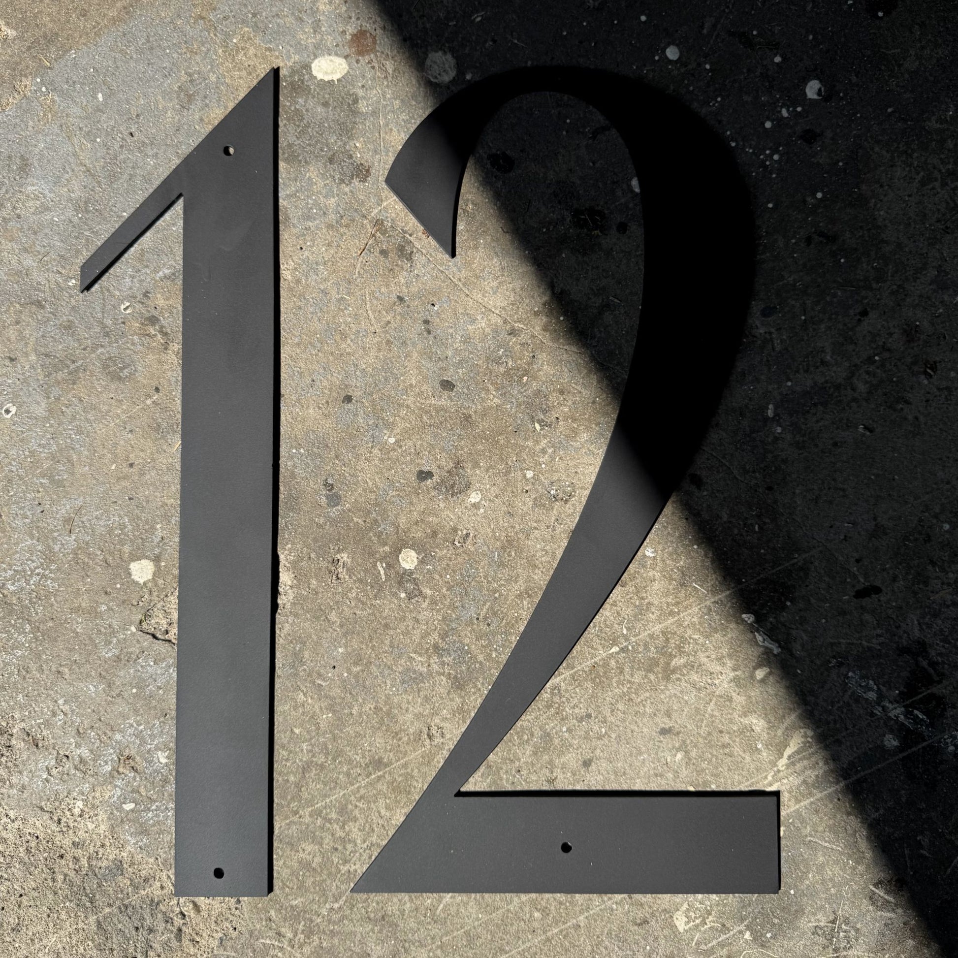 Huomioithan, että kuvissa näkyvät talonumerot ovat joko mustaksi maalattu tai hiiliterästä. Muiden materiaalien kuvat lisätään verkkokauppaan pian.