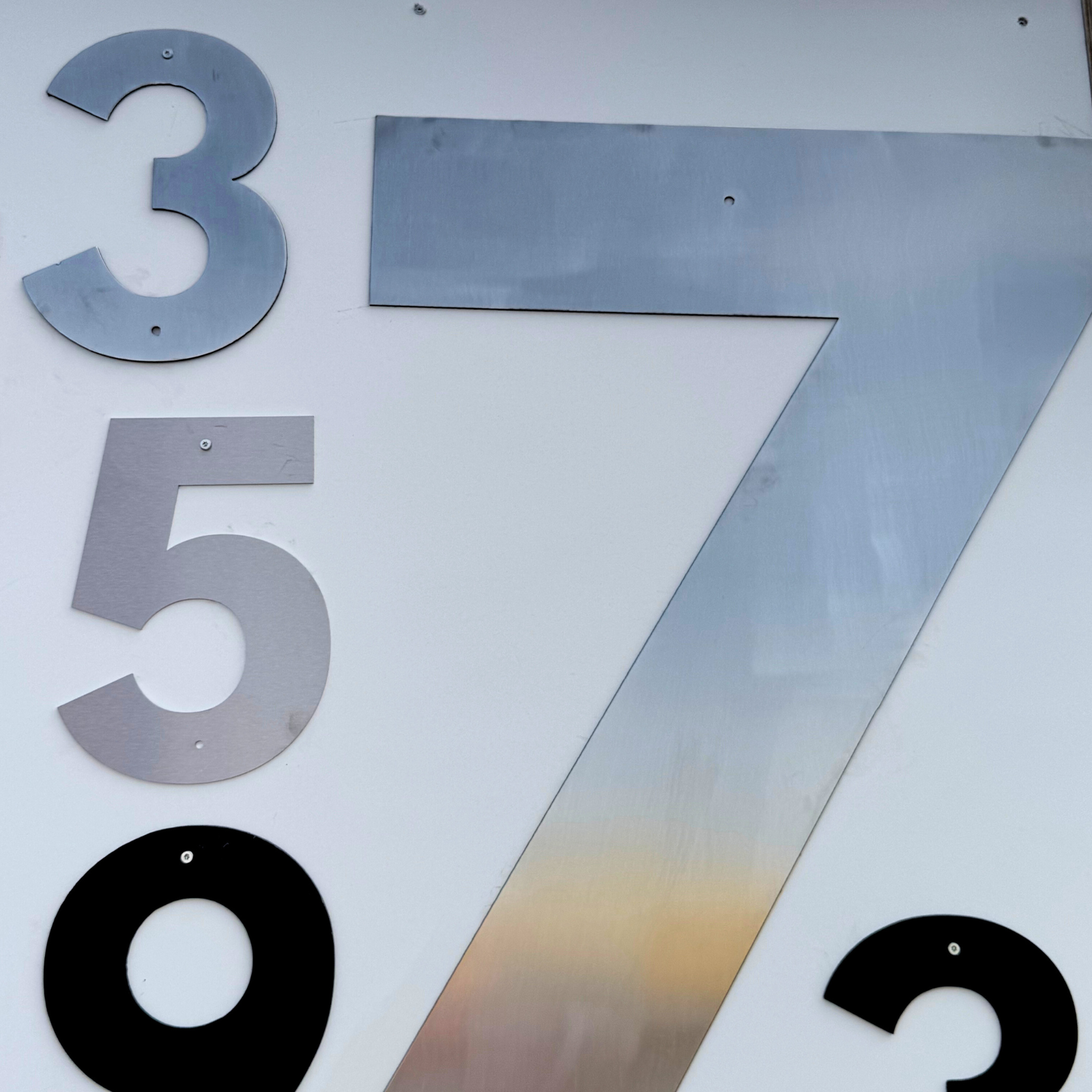Harjattu ruostumaton teräs tuo Kuru-talonumeroon hienostunutta särmää ja modernia arkkitehtonisuutta. Pinta on heijastamaton, hienovaraisen kiiltävä ja erittäin säänkestävä. Se sopii erityisesti kohteisiin, joissa arvostetaan viimeisteltyä mutta eleetöntä ulkonäköä. Saatavilla neljässä koossa aina pienestä suureen ja jättikokoiseen talonumeroon.