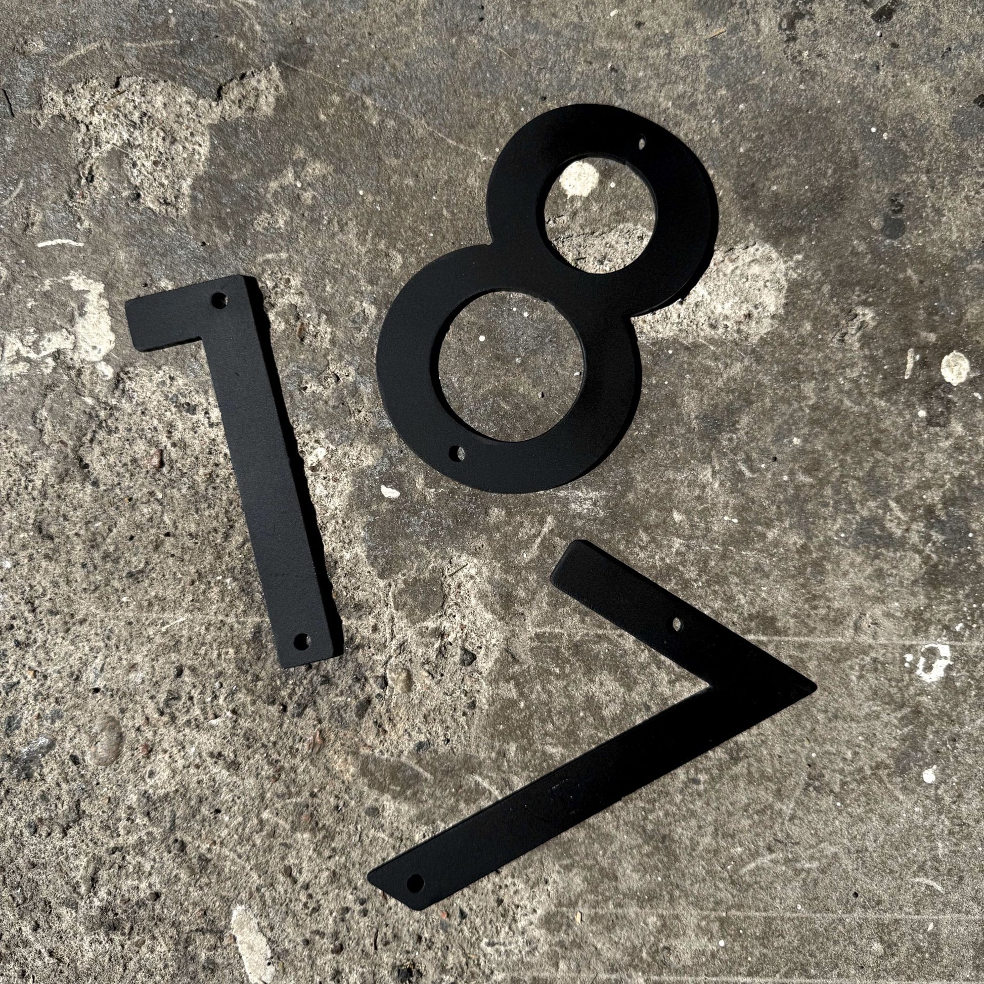 Huomioithan, että kuvissa näkyvät talonumerot ovat joko mustaksi maalattu tai hiiliterästä. Muiden materiaalien kuvat lisätään verkkokauppaan pian.